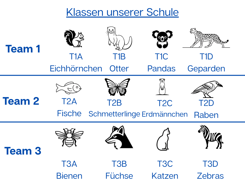 Es gibt zwölf jahrgangsübergreifende Klassen (JüL) mit jeweils 24-27 Kindern der Jahrgangsstufen 1-4 gemischt an der Dietrich-Bonhoeffer-Schule. Sie sind zu drei Teams zusammen gefasst. Die Kinder eines Teams haben gemeinsamen jahrgangsbezogenen Unterricht (JU).